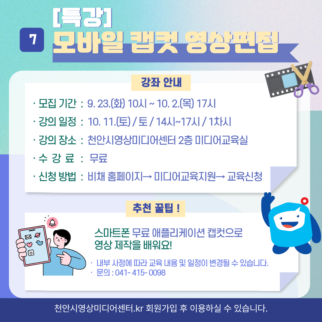 교육장소천안시영상미디어센터 3층 미디어교육실