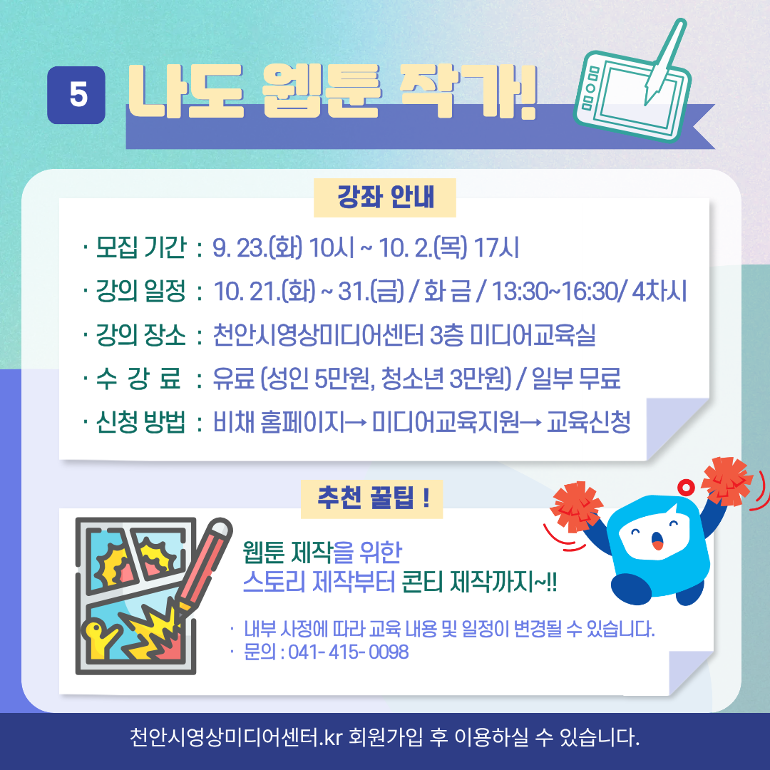 교육장소천안시영상미디어센터 3층 미디어교육실