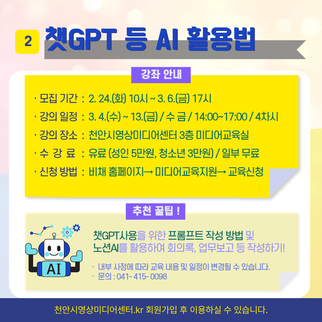 교육장소천안시영상미디어센터 3층 미디어교육실