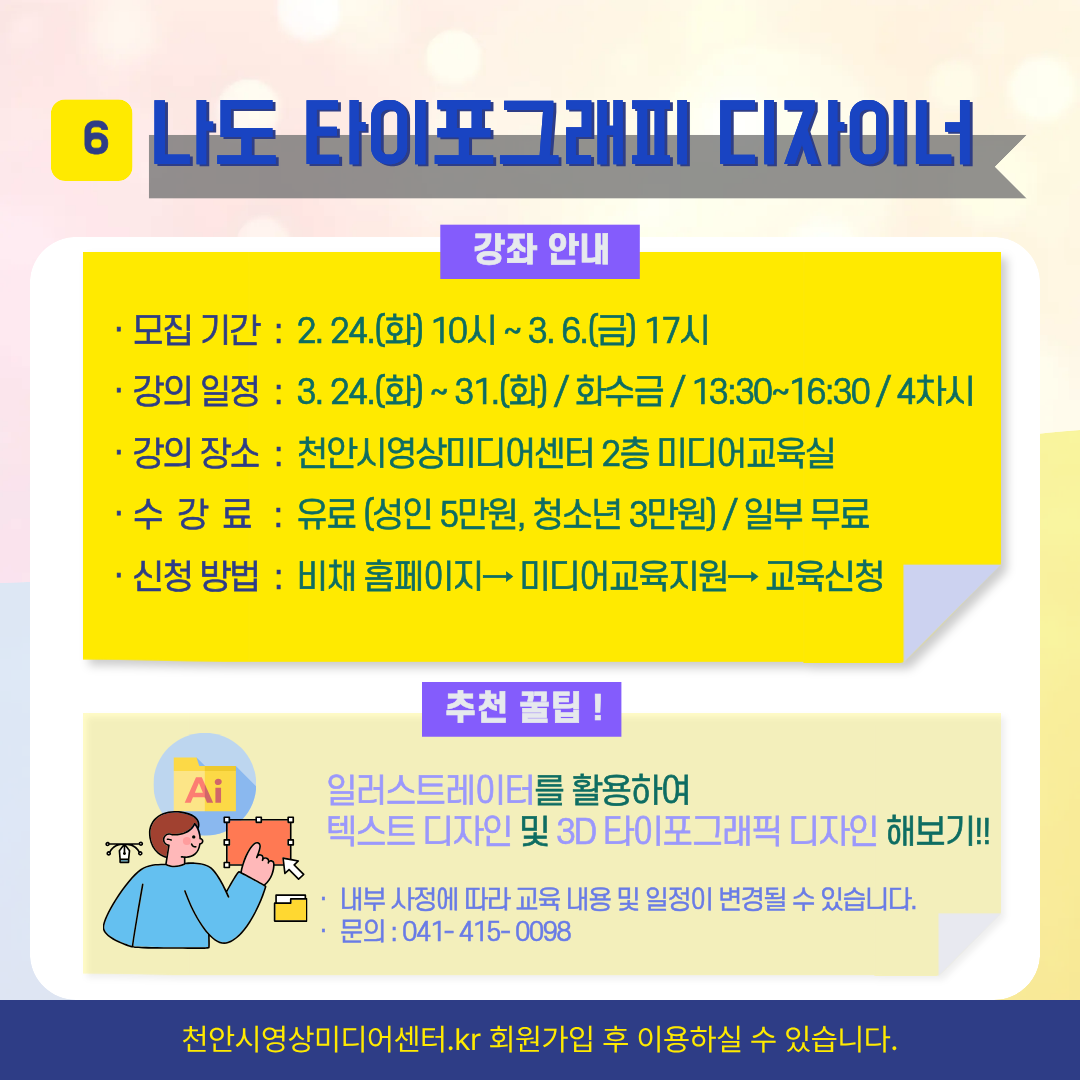 교육장소천안시영상미디어센터 3층 미디어교육실